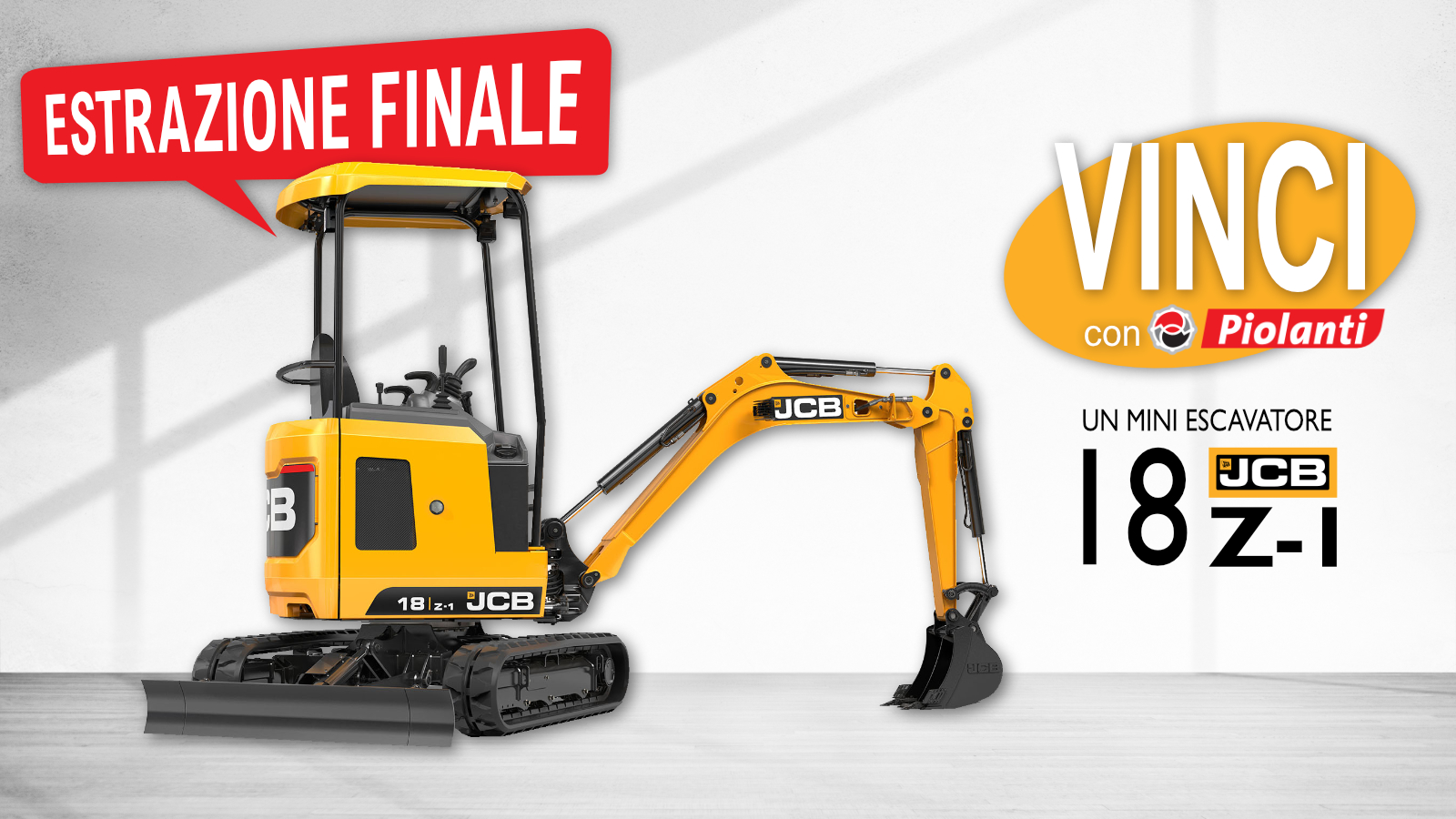 Già, perché il 22 Febbraio 2024 finalmente ci sarà l’estrazione del concorso “Prova a Vincermi”, ovvero il Concorso a premi che per la prima volta ha messo in palio per i clienti Piolanti – JCB un mini escavatore 18Z-I nuovo di zecca, uno dei prodotti in assoluto più apprezzati dal mercato in questa categoria (quella dei “mini”).