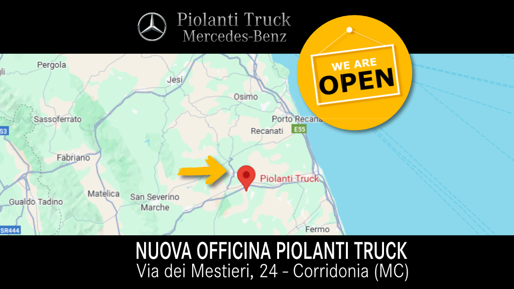 E’ aperta la nuova “Officina Piolanti Truck” nelle Marche, a Corridonia (MC), in Via dei Mestieri 24.